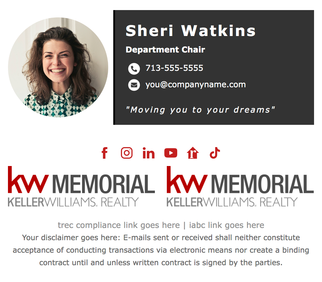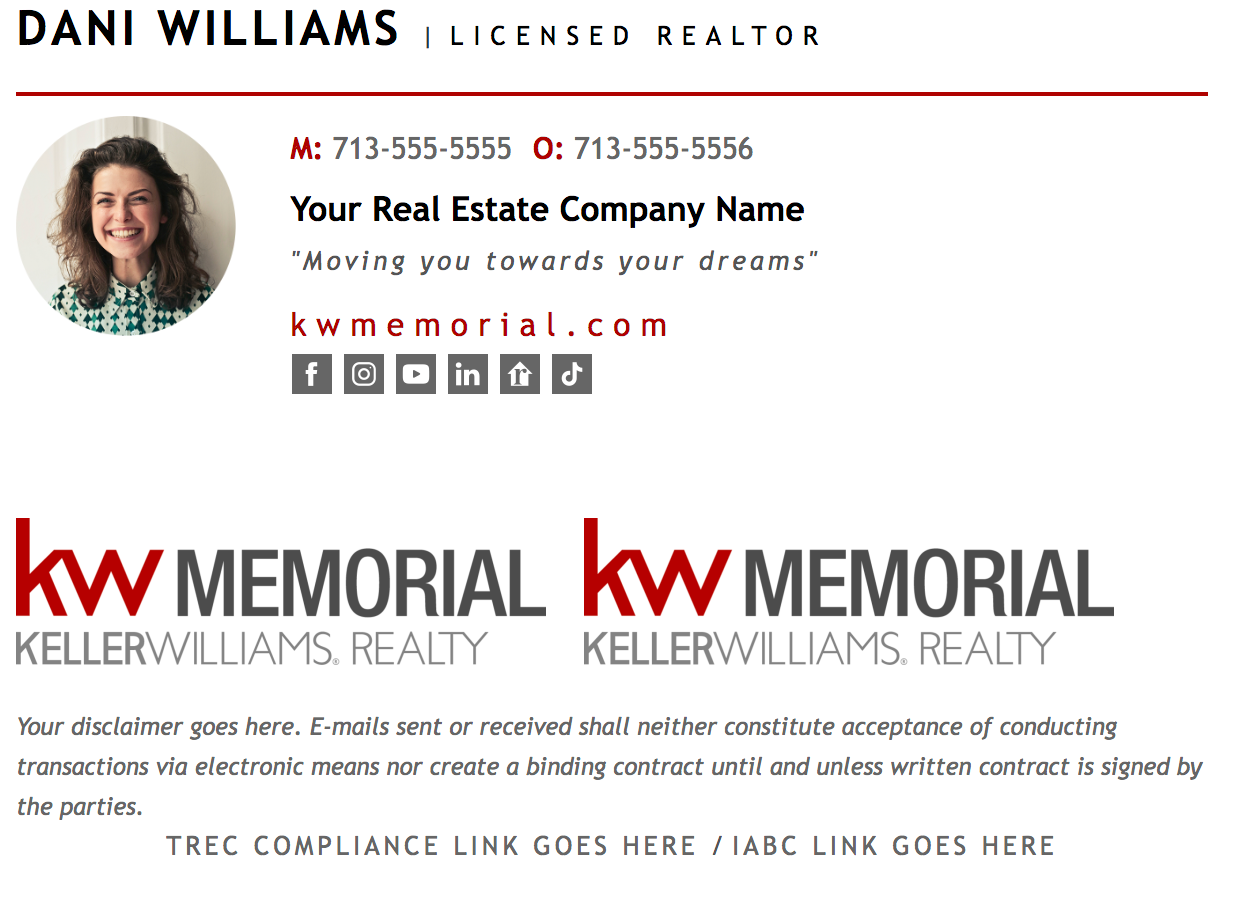 Please select the email signature of your preference below, input your contact information, and copy/paste it into your email settings.